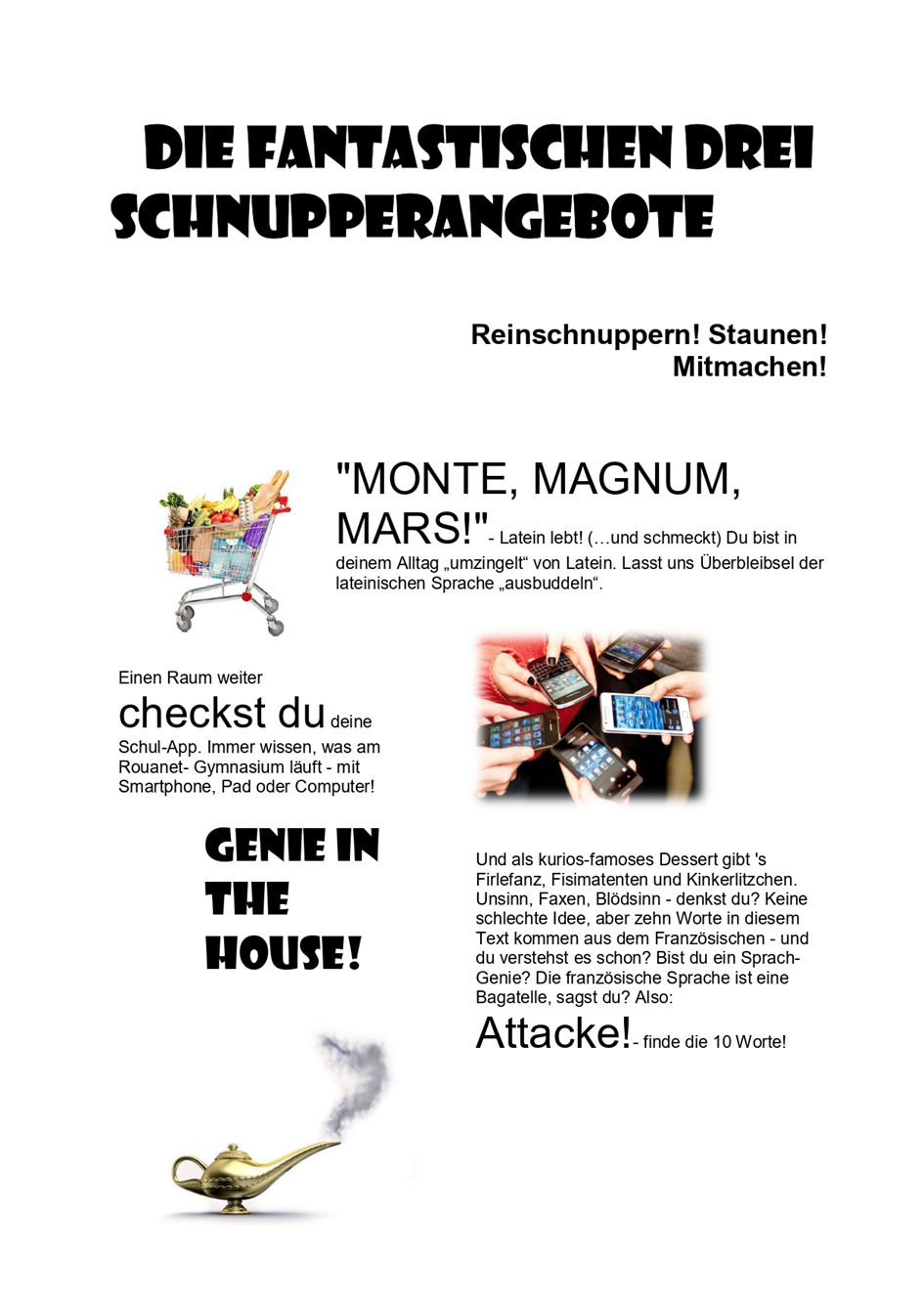 drei Schnupperangebote für SchülerInnen (siehe Rückseite)