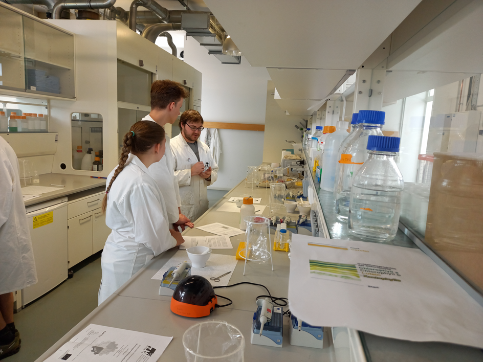 11 Schüler*innen der LK Biologie und Chemie 11 unternahmen am Freitag, dem 31.05. 2024 eine Exkursion zur TH Wildau, um dort im Schülerlabor Experimente zur Fotosynthese durchzuführen.